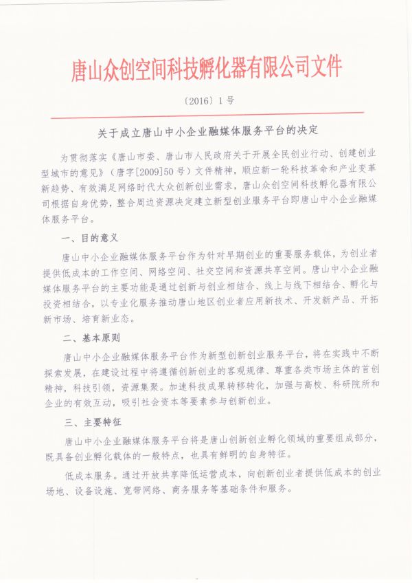 關(guān)于成立平臺的決定